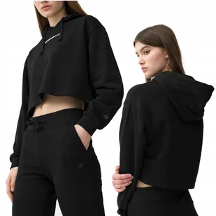 Damska bluza dresowa z kapturem firmy 4F model: SS23 SWSF249 kolor: czarny 20S Damska bluza dresowa wkładana przez głowę, wykonana z miękkiej dzianiny. Posia...