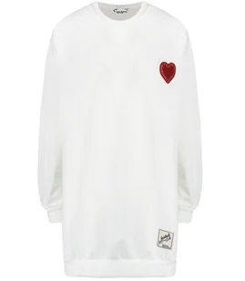 Fason oversize, luźny krój Dłuższa bluza/sukienka Naszywka w kształcie serca na piersi Dekolt okrągły Rękawy długie, zakończone ściągaczami Styl casual, stre...