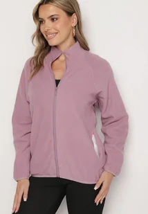 Fioletowa Bluza Polar na Suwak o Prostym Kroju ze Stójką i Kieszeniami Esamira