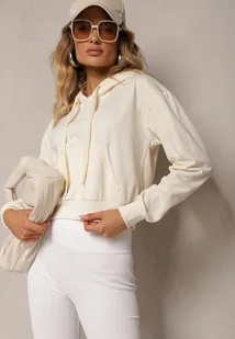 Jasnobeżowa Bluza z Kapturem i Bawełną Ozdobiona Ściągaczami Evianae