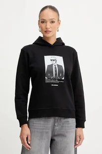 Karl Lagerfeld bluza damska kolor czarny z kapturem z nadrukiem B1W20012