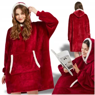 BLUZA KOC BLUZOKOC OVERSIZE GRUBA XXL KOCBLUZ FUTRZAK Z KAPTUREM CZERWONY DLA DZIECI DZIEWCZYNY PRZYTULNOŚĆ I KOMFORT IDEALNA NA CHŁODNE WIECZORY! Bluzok...