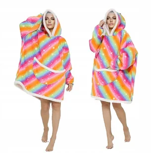 KOCO BLUZA TV CIEPŁA PODOMKA Z KAPTUREM KOC KOLOROWA OVERSIZE UNIWERSALNA