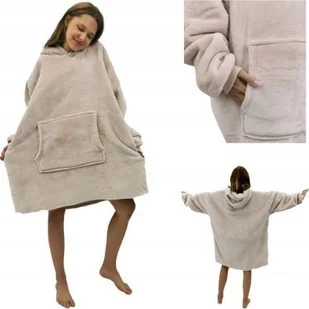 kontrast Ciepła gruba bluza z kapturem kocobluza oversize jasnobeżowa