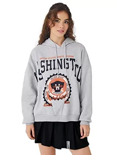 Koton Damska bluza z kapturem z nadrukiem oversize, Szary melanż (Grm)