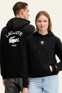 Lacoste bluza bawełniana kolor czarny z kapturem z nadrukiem SH2740