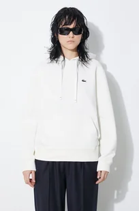 Lacoste bluza damska kolor biały z kapturem gładka SF8346