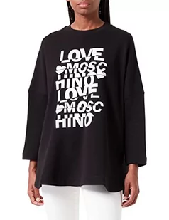Love Moschino Damska bluza oversize okrągły dekolt z brokatem Cut and Paste Effect Brand Print, czarny, S