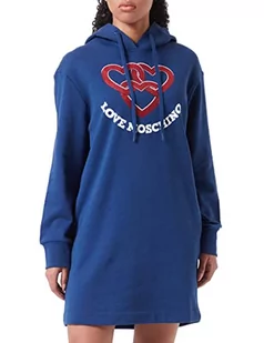 Love Moschino Damska bluza z kapturem z długim rękawem z chained hearts z nadrukiem, niebieski, 48