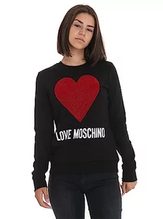 Love Moschino Damska bluza z okrągłym dekoltem, okrągły dekolt, okrągły dekolt, z wytłoczonymi płatkami cekiny i wodnym nadrukiem logo, czarna, 44, czarny, 44