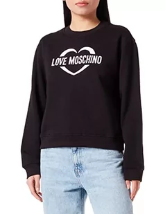Love Moschino Damska bluza z okrągłym dekoltem z holograficznym nadrukiem serca, czarna, 40, czarny, 40