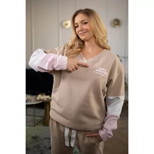 Bluza klasyczna damska marki Patriotic by Basia Kurdej-Szatan Cechy produktu: - bluza klasyczna o oversizowym króju z dekoltem w serek - skład: 90% bawełna 1...