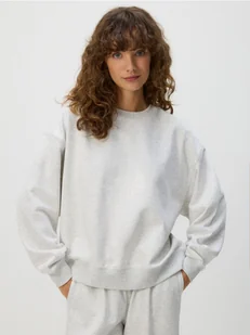 Bluza o swobodnym fasonie, wykonana z gładkiej, bawełnianej dzianiny.