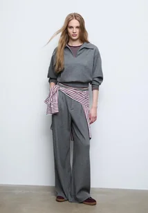 Bluza wykonana z mieszanki modalu, która zapewnia niezwykle miękki dotyk. Kołnierz z klapami i dekolt w serek, z długim rękawem zakończonym elastycznym mankietem. Dostępna w różnych kolorach.
