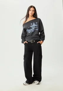 Stradivarius Bluza z dekoltem łódka i nadrukiem Ciemnoszary L