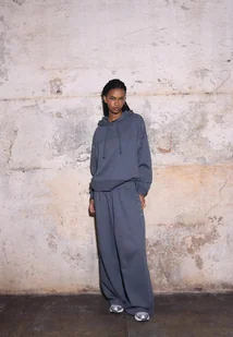 Bluza z Kapturem regulowanym sznurkiem. Długi rękaw. Wykończenie z prążkowanej dzianiny. Ozdobne ćwieki na ramionach i haft z przodu.