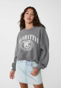 Stradivarius Krótka bluza z nadrukiem Ciemnoszary XL