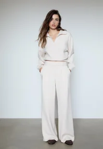 Miękka w dotyku bluza. Kołnierz z klapami i dekolt w serek z długim rękawem zakończonym elastycznym mankietem. Dostępna w różnych kolorach.