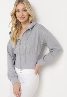 Szara Bluza z Szerokim Ściągaczem w Talii i Kapturem Zapinana na Suwak Itravea