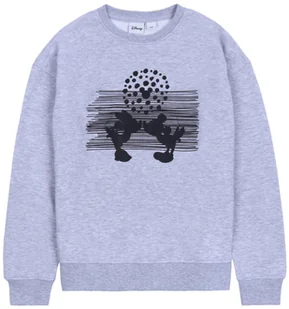 Szara, damska bluza wciągana przez głowę, z przodu nadruk z wizerunkami Myszki Minnie i Mickey. Dół, rękawy oraz dekolt bluzy zakończone delikatnymi ściągacz...