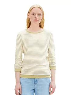 TOM TAILOR Denim Damska bluza z marszczonym rękawem i wzorem w paski, 32804-White Green Structured Stripe, XXL