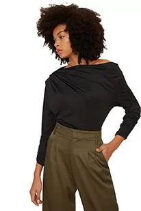 Trendyol Damska bluza Black Kayak Collar Draped Knitted Blouse, czarny, XL