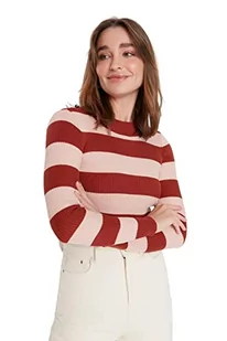 Trendyol Damska bluza z dzianiny ECU w paski, Czerwone płytki, M