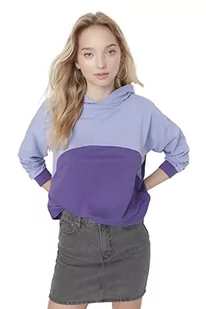 Trendyol Damska bluza z kapturem Colorblock Regular Bluza, fioletowa, M, Fioletowy