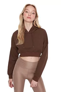 Trendyol Damska bluza z kapturem, jednokolorowa, dopasowana, Brązowy, M