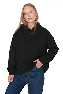 Trendyol Damska bluza z kapturem jednokolorowa, luźna, czarna, L, Czarny