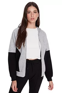 Trendyol Damska bluza z klapą i kołnierzem w kolorowe bloki, Szary, L