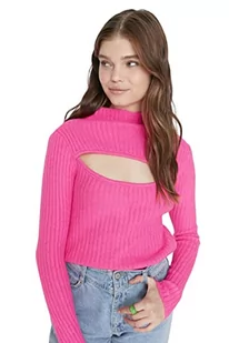 Trendyol Damska bluza z okrągłym dekoltem jednokolorowa dopasowana bluza, różowy, S