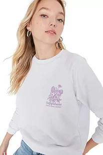 Trendyol Damska bluza z okrągłym dekoltem, jednokolorowa, regularna bluza, biały, L