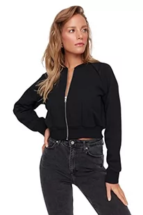 Trendyol Damska bluza z okrągłym dekoltem, jednokolorowa, regularna bluza, Czarny, XL