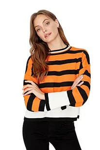 Trendyol Damska bluza z okrągłym dekoltem z blokami kolorów, pomarańczowa, S, pomarańczowy, S