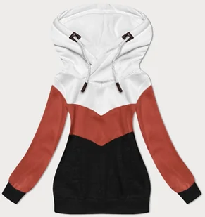 Trójkolorowa gruba bluza damska biały-pomarańczowy-czarny (2303) - 6&8 Fashion
