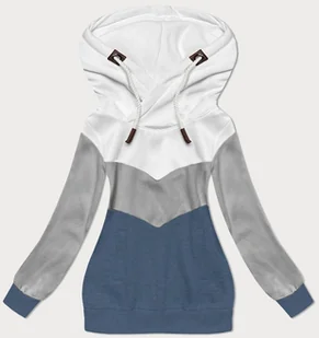 Trójkolorowa gruba bluza damska biały-szary-niebieski (2303) - 6&8 Fashion