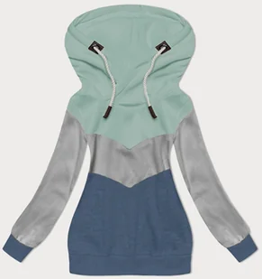 Trójkolorowa gruba bluza damska miętowy-szary-granat (2303)