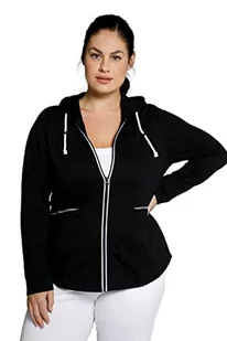 Ulla Popken Damska bluza dresowa, kaptur, akcenty kolorystyczne, z tyłu długa bluza, Black Beauty (kolor zamienny), 42/44