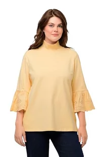 Ulla Popken Damska bluza z wyszywanymi rękawami, jasny żółty, 54-56 duże rozmiary
