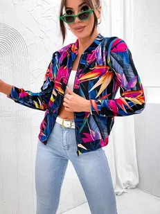 Welurowa bluza typu bomber czarna-wielokolorowa (707S) - MOON