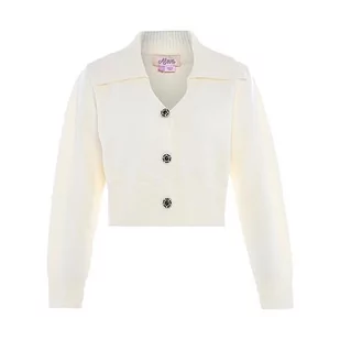 Aleva Damski kardigan z długim rękawem w delikatnym stylu z kołnierzem polo, wełniany biały, rozmiar M/L, biały (wollweiss), M