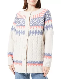 aleva Damski sweter z dzianiny z guzikami 15425018-AL04, beżowy czerwony niebieski, M/L, Beżowy, czerwony, niebieski., M-L