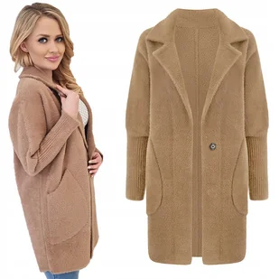 Kardigan Damski Długi Ciepły Sweter Narzutka z Kieszeniami MORAJ L/XL