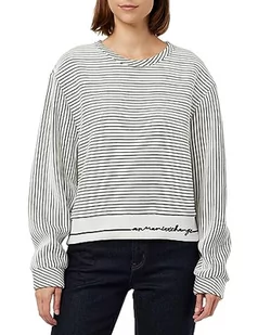 Armani Exchange Damski sweter z wiązanym paskiem, kontrastowa linia logo, okrągły dekolt, czarny/biały, XS