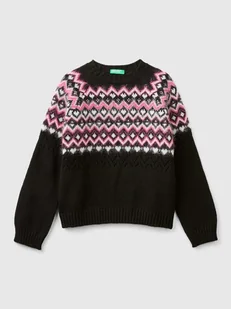 Sweter w kolorze czarnym - dekolt: okrągły - ściągacz: dekolt - wzór splotu: ścisły - krój: luźny - wzór: mix
