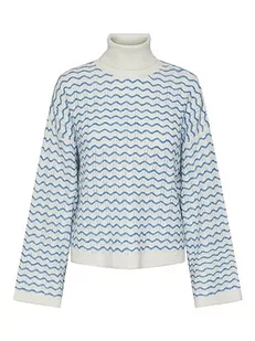 Bestseller A/S Damski sweter Pcjoyce Ls Oversize Roll Neck Knit Bc, Cloud Dancer/wzór: francuski niebieski, L
