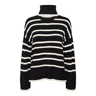 Bestseller A/S Damski sweter VMSABA LS Rollneck GA NOOS, czarne/paski: brzoza, XXL, Black/Stripes:birch, XXL