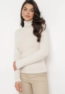Beżowy Elastyczny Golf z Puszystej Tkaniny z Wełną Doulcet