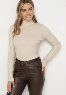 Beżowy Golf Sweter z Wiskozą i Kaszmirem Zailaya